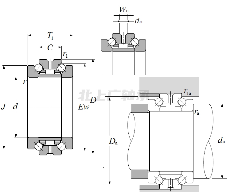 | 雙向角接觸推力球軸承 - 尺寸 | |