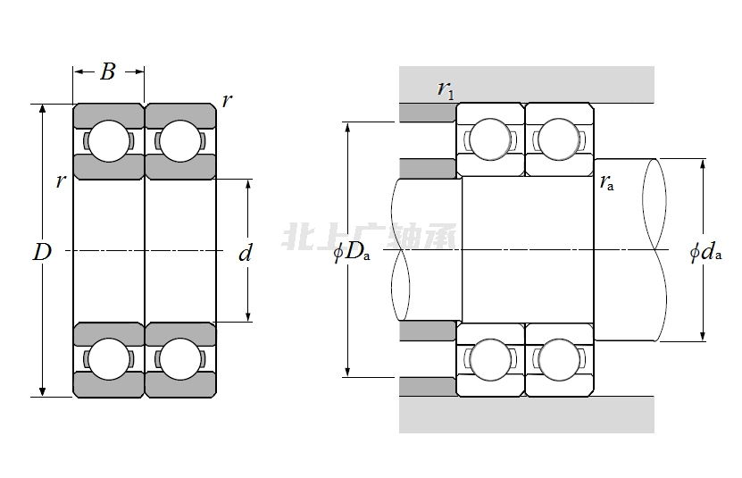 ,后綴列表:【D2:兩套相同軸承雙聯(lián)組配】【PX9:特殊精度 9級】【V21:特殊規格】