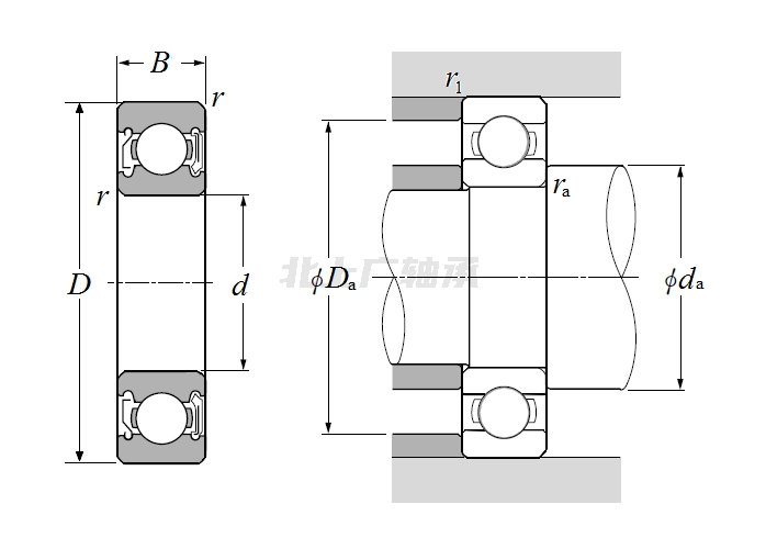 | 單列向心球軸承 - 單面帶防塵蓋 & 單面密封(非接觸式橡膠密封) - 尺寸 | |