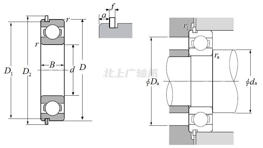 | 單列向心球軸承 - 開(kāi)式,帶卡環(huán) - 尺寸 | |