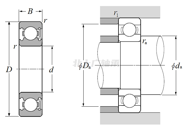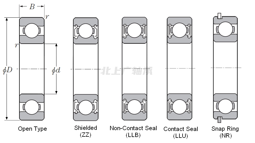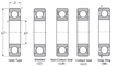 | 單列向心球軸承 - 單面密封(接觸式橡膠密封) - 尺寸 | |
