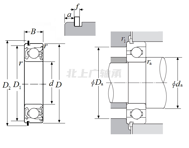前綴列表:【BL:深溝球軸承和圓柱滾子軸承間的過(guò)渡軸承】,后綴列表:【ZZ:雙面帶壓制鋼板防塵蓋】【NR:外圈有止動(dòng)槽和止動(dòng)環(huán),單側密封時(shí)設在密封的另一側】