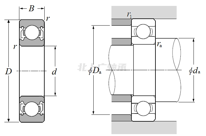 | 單列向心球軸承 - 雙面帶防塵蓋 - 尺寸 | |