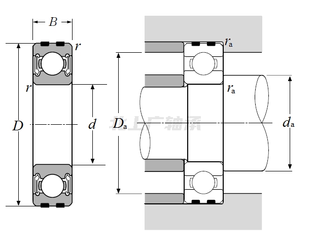 | 膨脹補償軸承 - 雙面密封(非接觸式橡膠密封) - 尺寸 | |