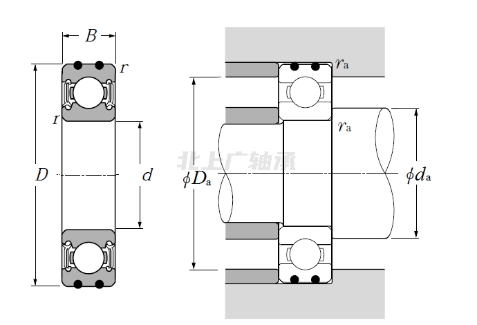 | AC型軸承 - 雙面密封(接觸式橡膠密封) - 尺寸 | |