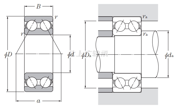 | 雙列角接觸球軸承 - 開(kāi)式 - 尺寸 | |