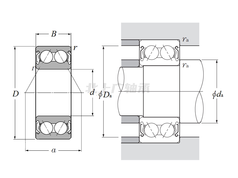 | 雙列角接觸球軸承 - 雙面帶防塵蓋 - 尺寸 | |