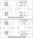 | 單列角接觸球軸承 - 開(kāi)式 - 尺寸 | |