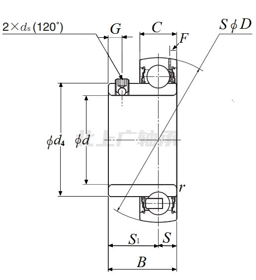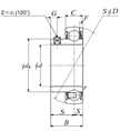 前綴列表:【A-:潤滑孔設在鎖緊設備的另一側】【AR:AR 系列外球面球軸承,帶止動(dòng)螺釘】,后綴列表:【D1:帶潤滑油孔】
