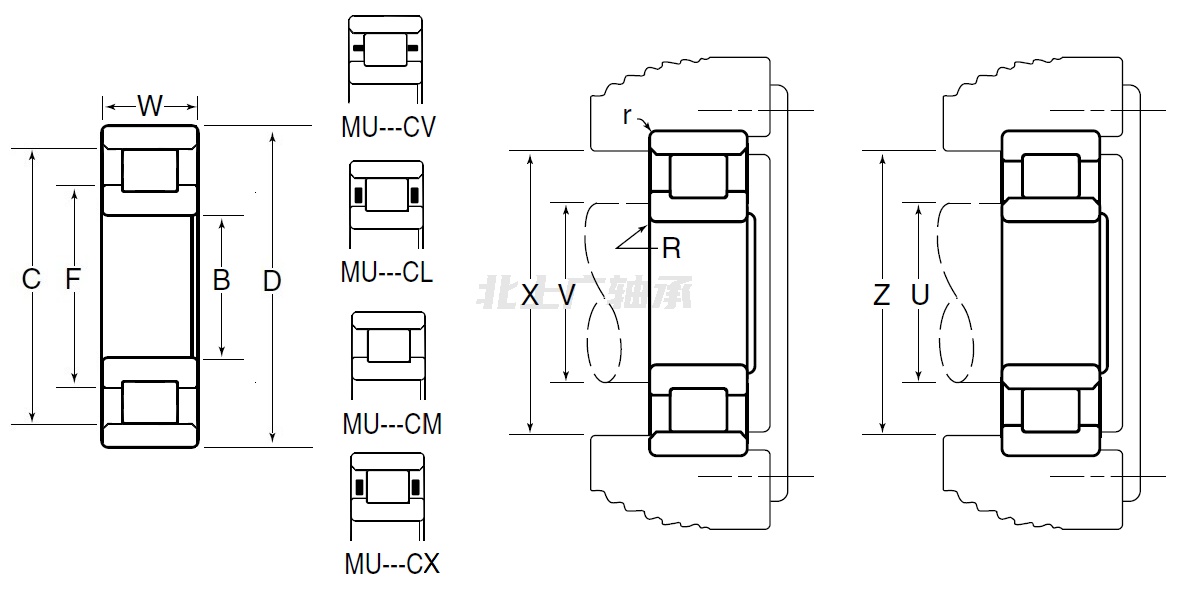 前綴列表:【M:Bower 系列圓柱滾子軸承】【A:內圈無(wú)擋邊,內圈可分離】,后綴列表:【T:外圈內徑中帶雙擋邊】【X:X-Bar 復合鋼保持架】