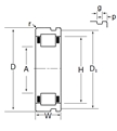 | 外圈帶滾針和保持架組件,外圈外徑帶雙肋,帶卡環(huán)槽 - 尺寸 | |