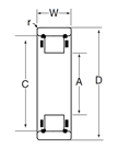 | 外圈帶滾針和保持架組件,兩邊帶擋圈 - 尺寸 | |