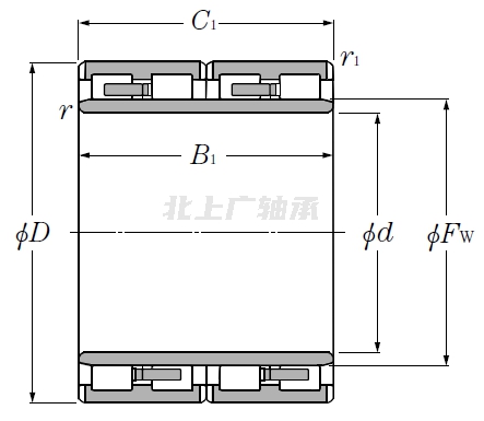| 四列圓柱滾子軸承,帶實(shí)心滾子和機加工保持架 - 尺寸 | |