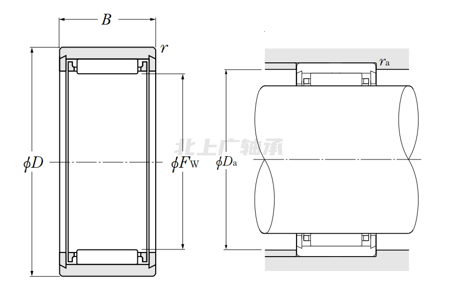 | 機加工外圈滾針軸承,不帶內圈 - NK,NKS系列 - 尺寸 | |
