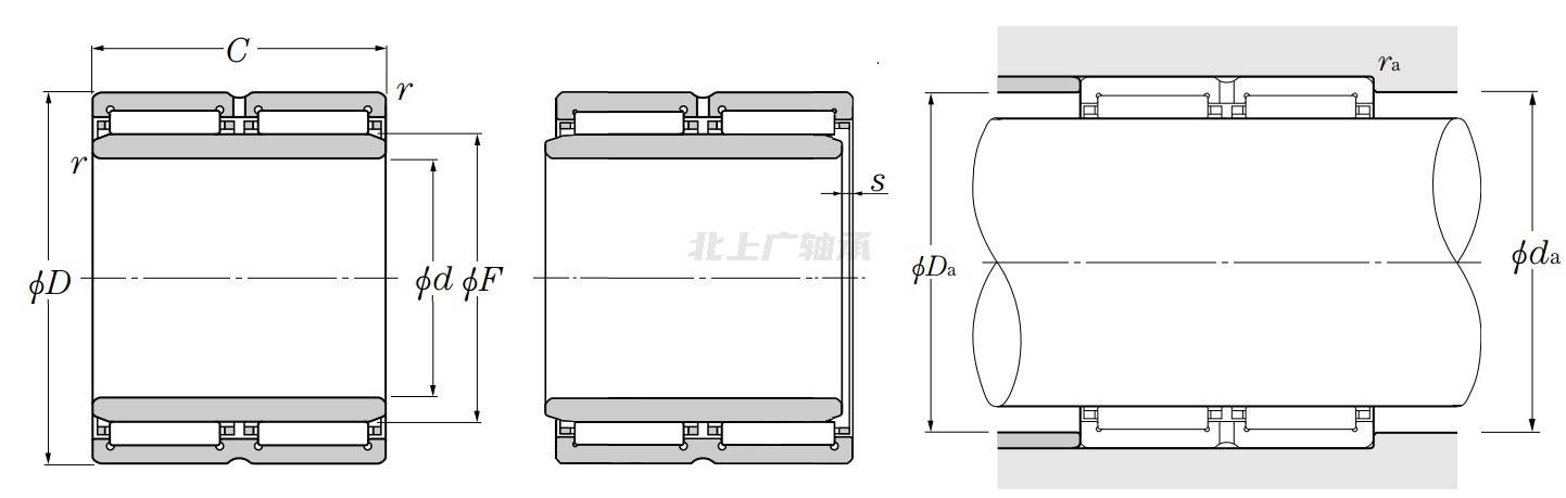 | 雙列機加工外圈滾針軸承,,帶內圈 - NA69.R系列 - 尺寸 | |