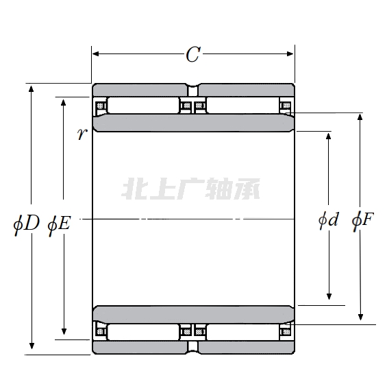 | 雙列機加工外圈滾針軸承 - 可分離型,帶內圈 - 尺寸 | |