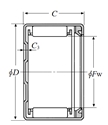 | 沖壓外圈滾針軸承 - BK型,單面密封 - 尺寸 | |