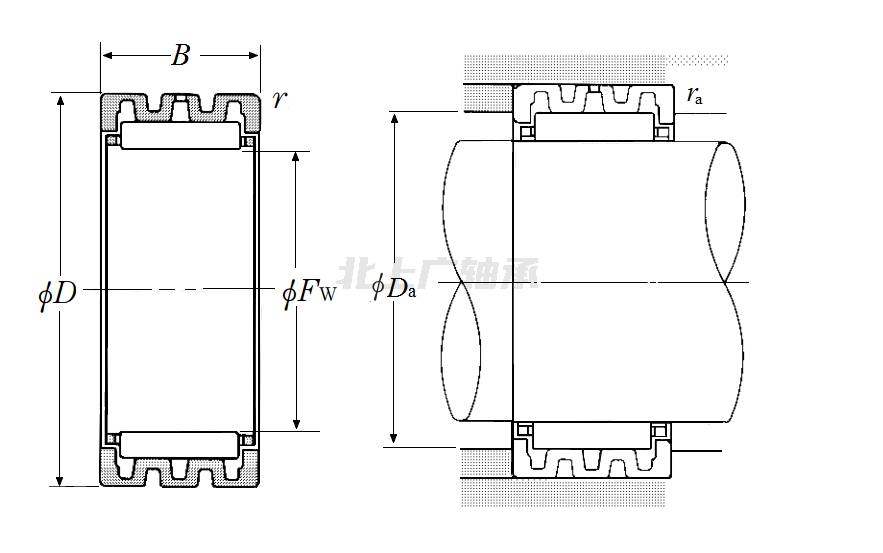 | 游隙可調滾針軸承,不帶內圈 - 尺寸 | |