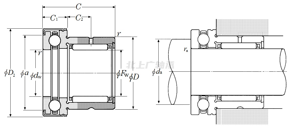前綴列表:【NA:滾動(dòng)體為滾針】【B:內外圈與保持架滾針組件,可分離型支承滾輪軸】