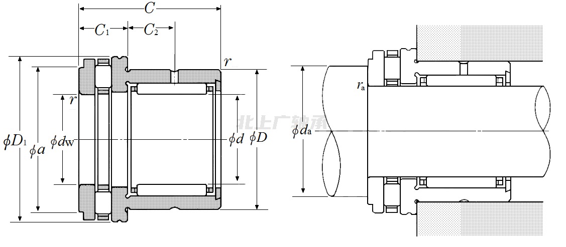 前綴列表:【NA:滾動(dòng)體為滾針】【CV:英制尺寸的滿(mǎn)裝滾子滾輪軸承】,后綴列表:【LL:兩側有接觸式密封圈】