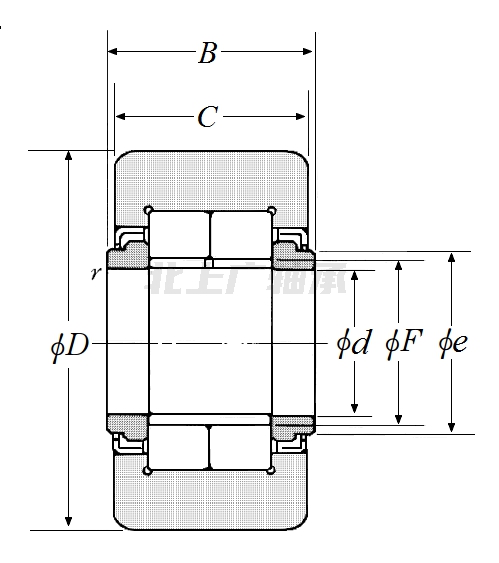 | 滾子從動(dòng)件,軛式履帶滾子軸承,帶內圈,NUTR型,圓柱外圈 - 尺寸 | |