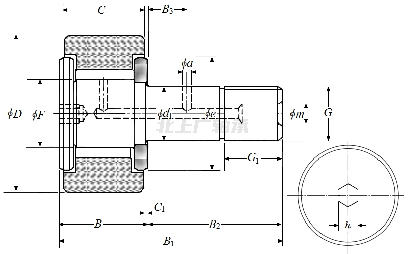 | 凸輪從動(dòng)件,螺柱型履帶滾子軸承 - 圓柱外圈,CRV..H型 - 尺寸 | |