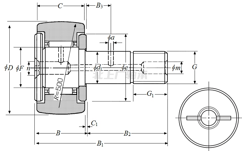 | 凸輪從動(dòng)件,螺柱型履帶滾子軸承 - 球面外圈,KR型 - 尺寸 | |