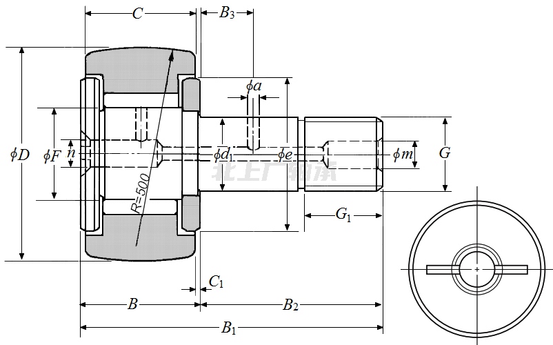 | 凸輪從動(dòng)件,螺柱型履帶滾子軸承 - 球面外圈,KRV型 - 尺寸 | |