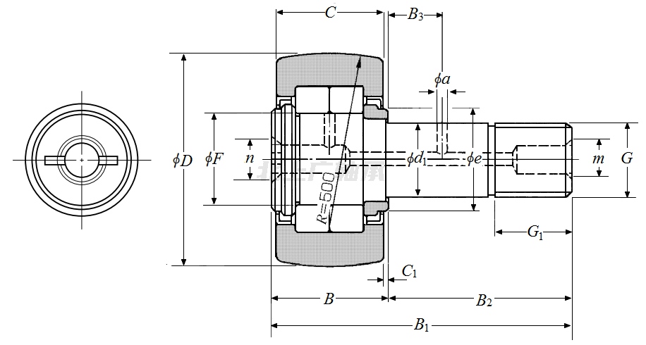 | 凸輪從動(dòng)件,螺柱型履帶滾子軸承 - 球面外圈,NUKR型 - 尺寸 | |