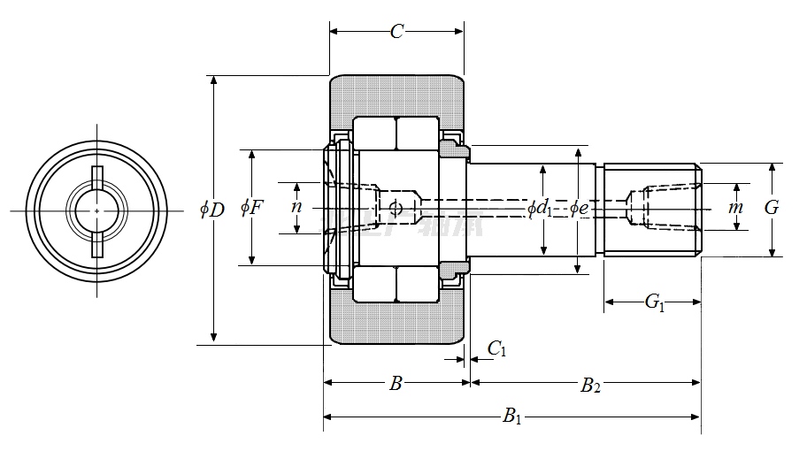 | 凸輪從動(dòng)件,螺柱型履帶滾子軸承 - 圓柱外圈,NUKRT型 - 尺寸 | |