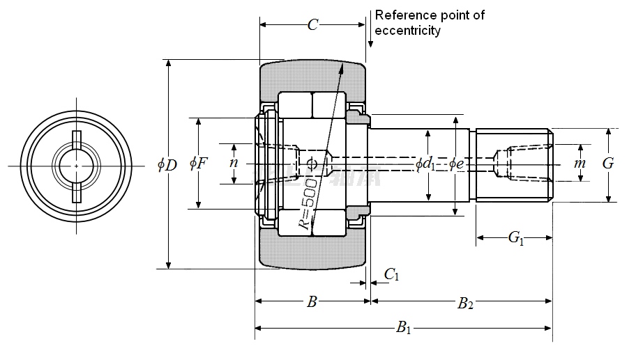 | 凸輪從動(dòng)件,螺柱型履帶滾子軸承 - 球面外圈,NUKRU型 - 尺寸 | |