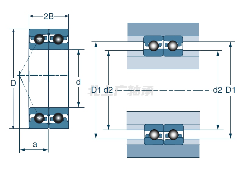 | 密封雙聯(lián)混合角接觸球軸承,高精度 - 尺寸 | |