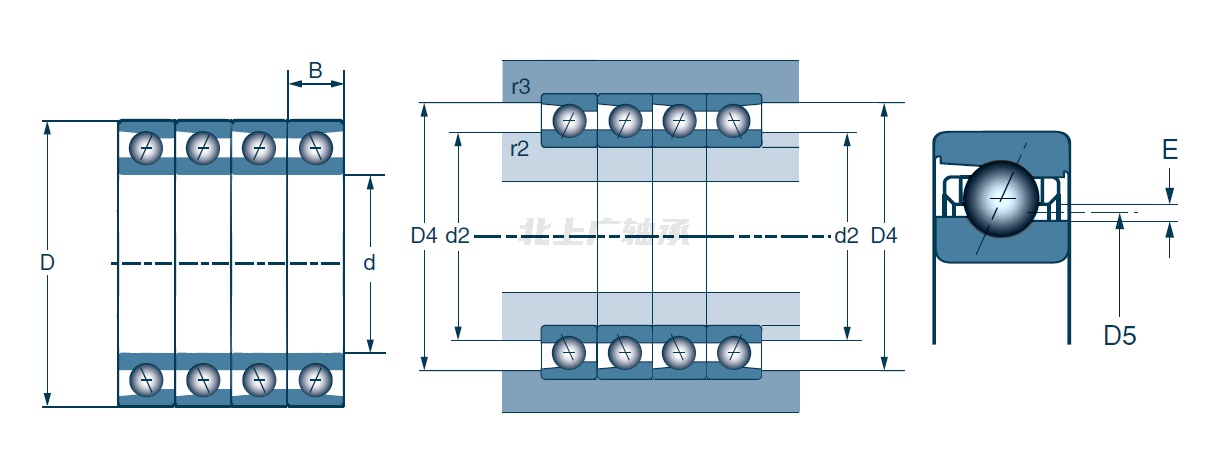 | 四列角接觸球軸承,機床用,Q18系列 - 尺寸 | |