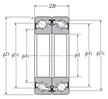 | 滾珠絲杠用雙列角接觸推力球軸承 - 面對面配對,雙面密封,一列承受軸向載荷 - 尺寸 | |