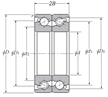 | 滾珠絲杠用雙列角接觸推力球軸承 - 背對背配對,開(kāi)式,一列承受軸向載荷 - 尺寸 | |