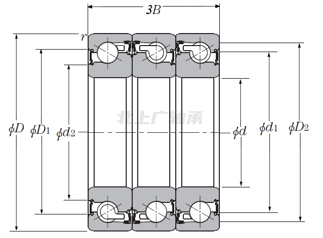 北上廣(廣州)有限公司是NTN軸承授權代理商,經(jīng)銷(xiāo)全品類(lèi)NTN軸承,NTN BST45X100-1BLXLDFT軸承屬于【NTN軸承 - 超精密軸承 - 滾珠絲杠用角接觸推力球軸承(BST型) - 三列】,基本描述為:Item # BST45X100-1BLXLDFT,滾珠絲杠用三列角接觸推力球軸承 - DFT 配對,雙面密封,兩列承受軸向載荷。
