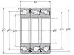 | 滾珠絲杠用三列角接觸推力球軸承 - DFT 配對,雙面密封,兩列承受軸向載荷 - 尺寸 | |