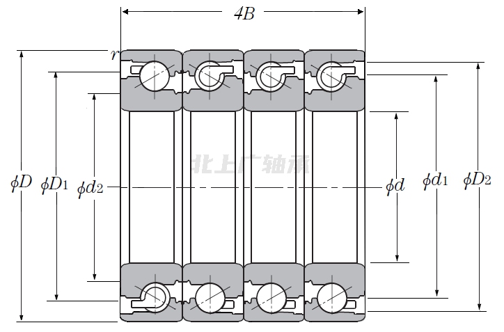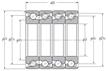 | 滾珠絲杠用四列角接觸推力球軸承 - DBTT 四列配對,開(kāi)式,三列承受軸向載荷 - 尺寸 | |