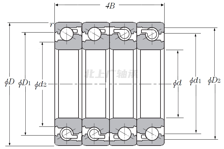 前綴列表:【BST:特殊熱處理】,后綴列表:【-1B:雙面輕接觸式丁腈橡膠密封圈】【DTBT:四列 \ \ / / 配對】