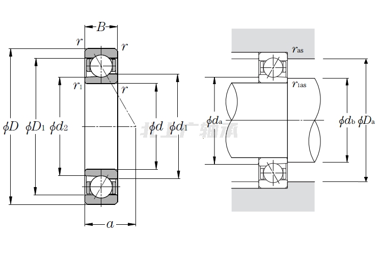 | 單列角接觸球軸承,電機和車(chē)床用 - 尺寸 | |