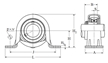 | 枕式軸承座,帶緊定螺釘,壓制鋼外殼,ASRPP型 - 尺寸 | |