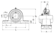 | 枕式軸承座,鑄造外殼,窄定位螺釘,ASPL型 - 尺寸 | |