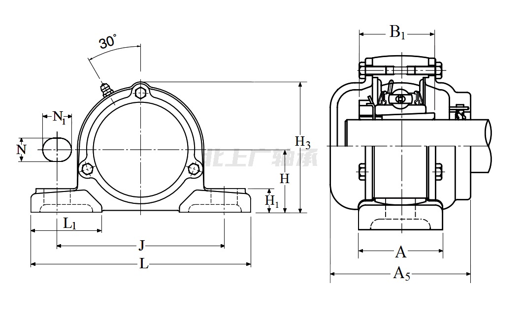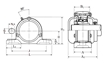 | 枕式軸承座,帶緊定套,鑄造防塵蓋,封閉端蓋,UKP型 - 尺寸 | |