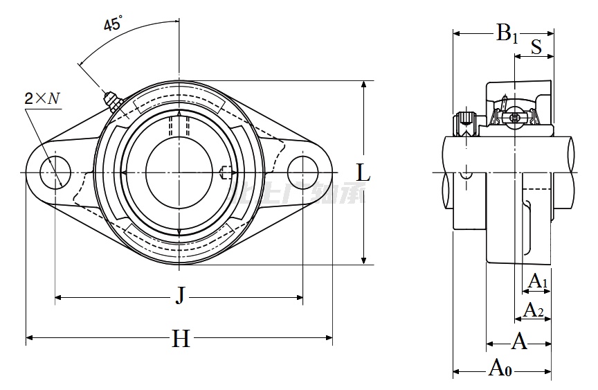 | 類(lèi)型 | 雙螺栓菱形法蘭式軸承座 |
