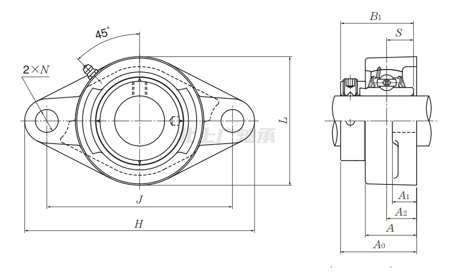 | 類(lèi)型 | 雙螺栓菱形法蘭式軸承座 |