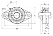 | 雙螺栓菱形法蘭式軸承座,鑄造外殼,帶緊定套,UKFL型 - 尺寸 | |