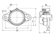 | 雙螺栓菱形法蘭式軸承座,帶緊定套,鑄造防塵蓋,封閉端蓋,UKFL型 - 尺寸 | |