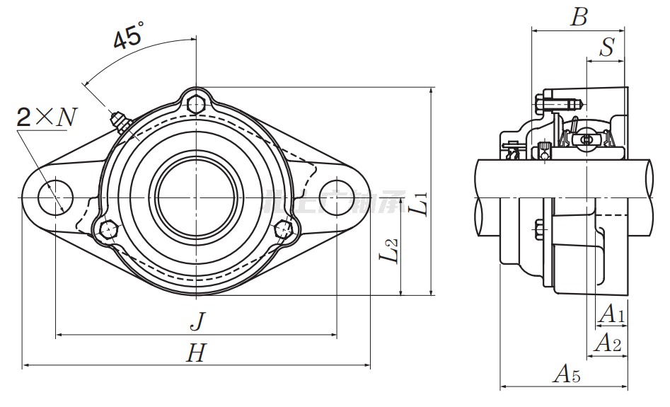 | 類(lèi)型 | 雙螺栓菱形法蘭式軸承座 |