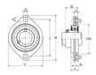 | 雙螺栓菱形法蘭式軸承座,壓制鋼外殼,帶緊定螺釘,ASPFL型 - 尺寸 | |