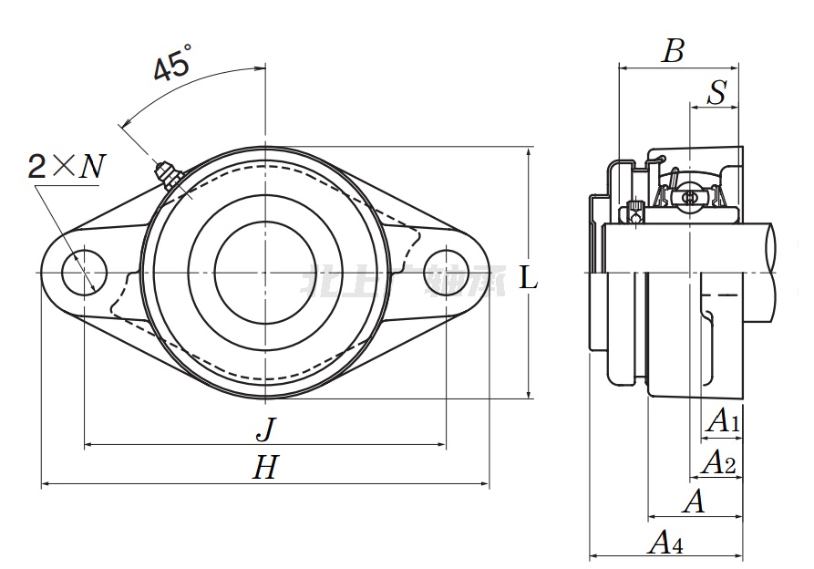 | 類(lèi)型 | 雙螺栓菱形法蘭式軸承座 |